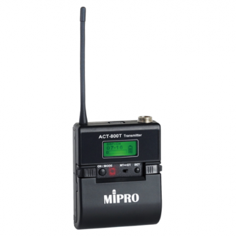 Trasmettitore beltpack da 72 MHz di banda con batteria ricaricabile al Litio o Alkaline